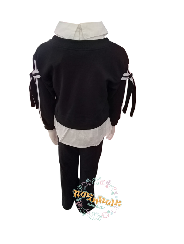 Mooie bling strik op het truitje, overhemdje zit aan het truitje vast