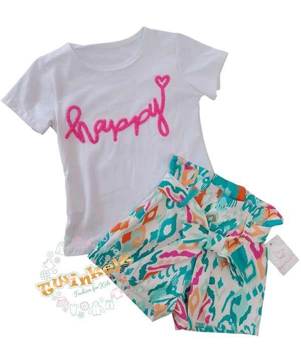 Super Leuk shirt met Happy roze wollige letters Verkrijgbaar vanaf maat 98/104 tm 158/164